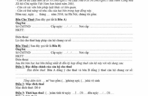 Tin tức Mẫu hợp đồng cho thuê căn hộ chuẩn nhất 2024 20/12/2024 Dưới đây là mẫu hợp đồng thuê căn hộ dịch vụ Alaya Apartment Read More